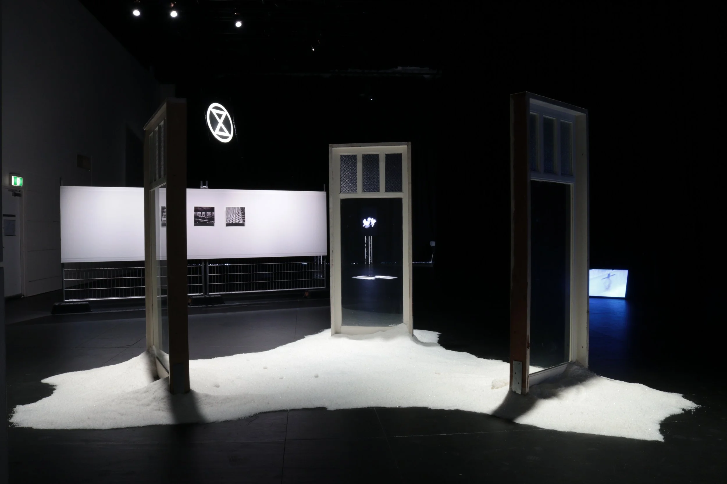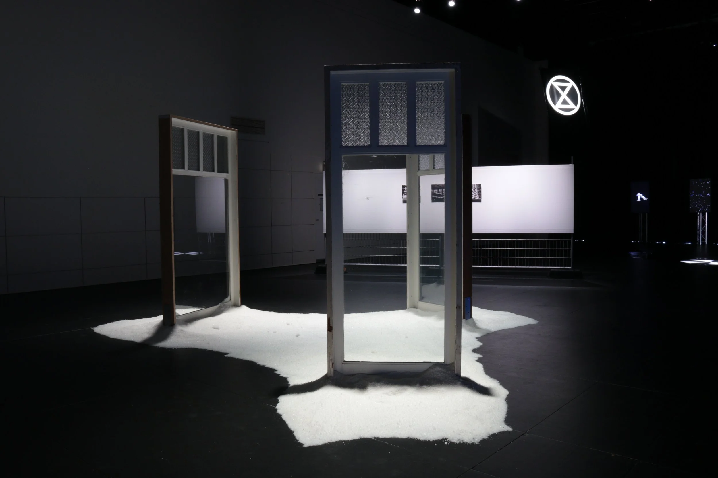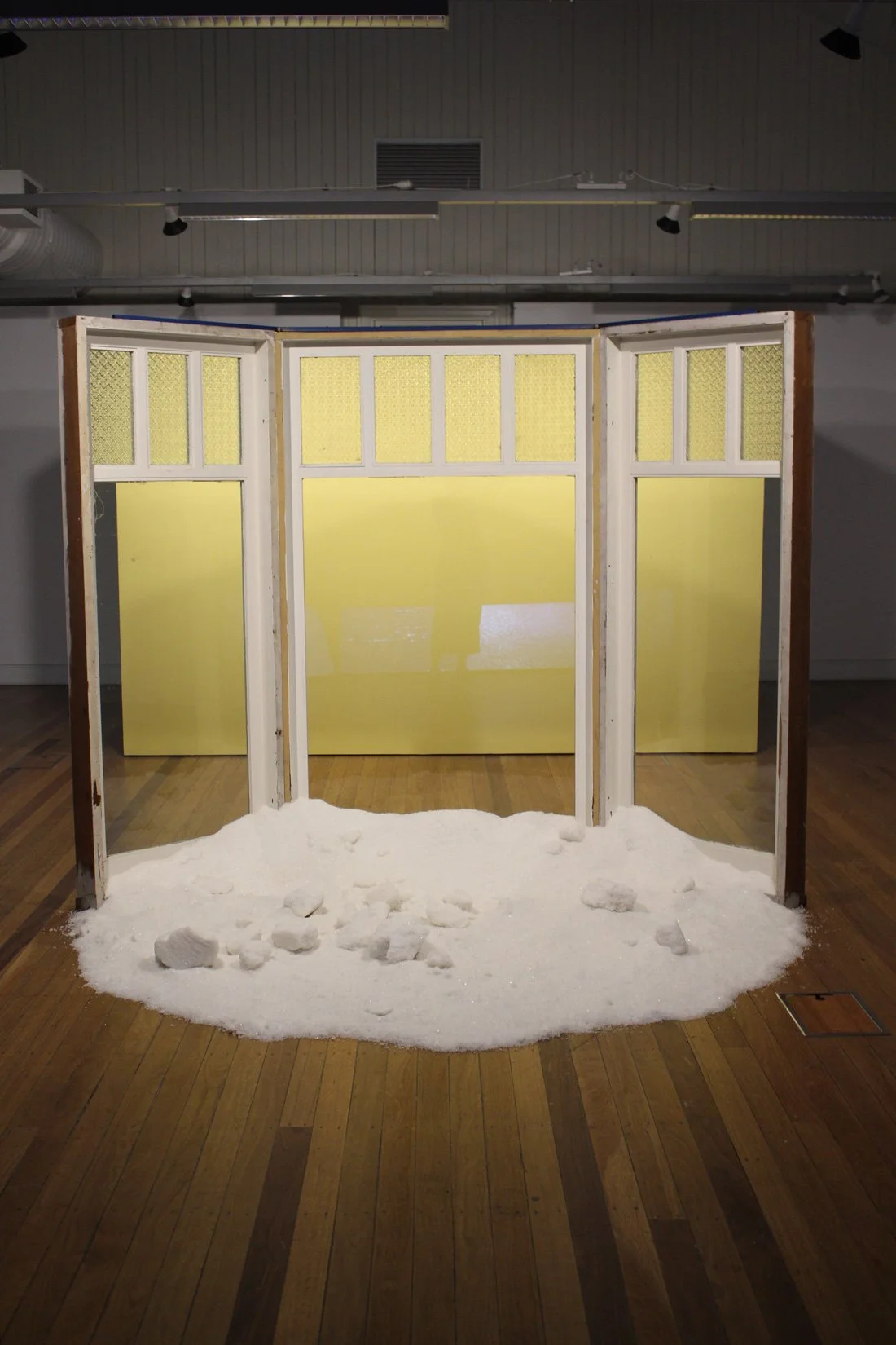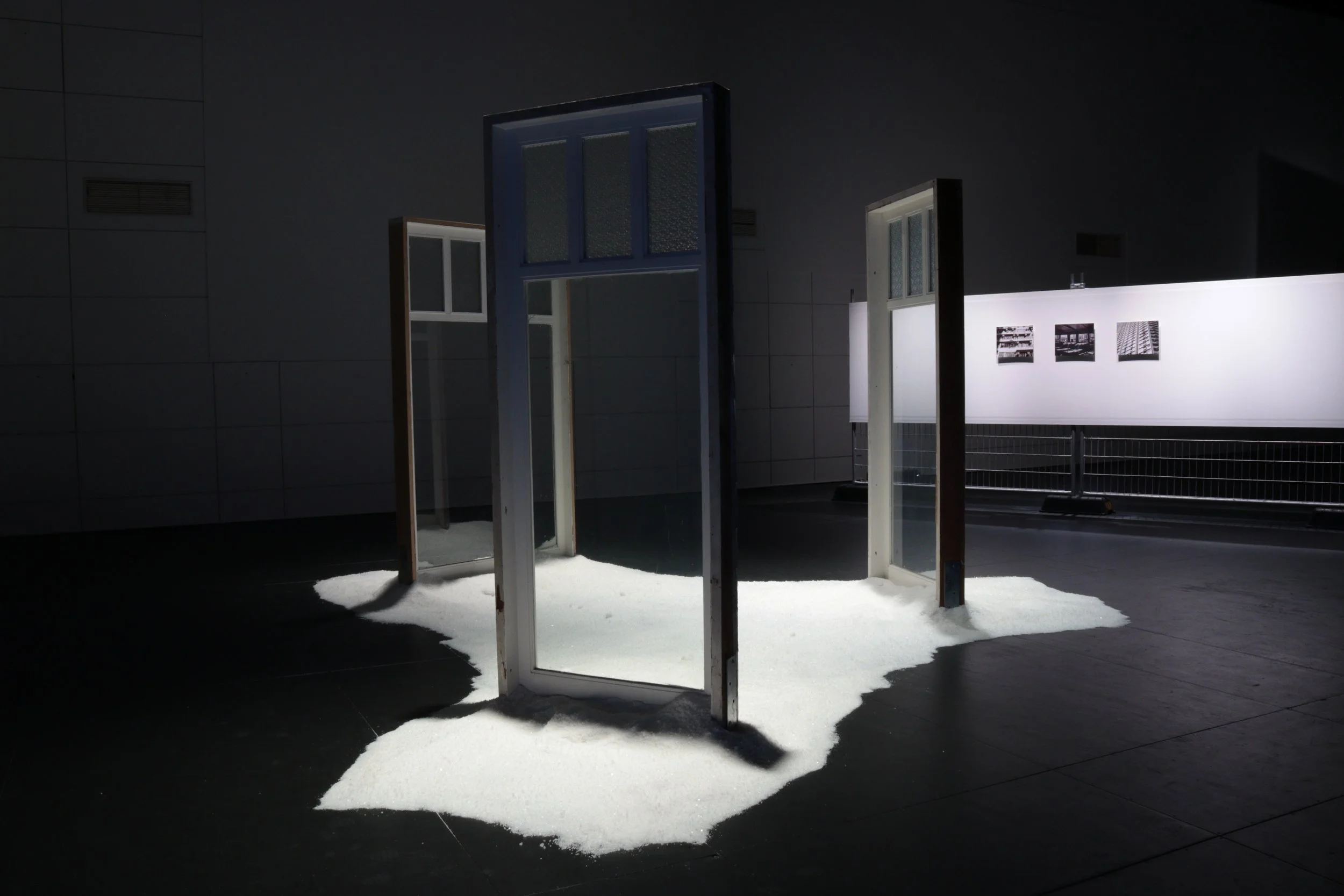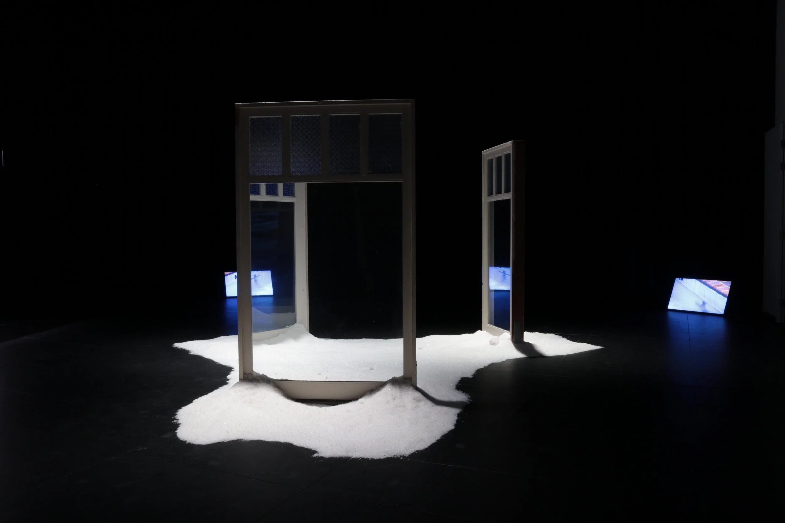 pine and glass windows, 450kgs salt, sound duration: 00h:57m:58s looped